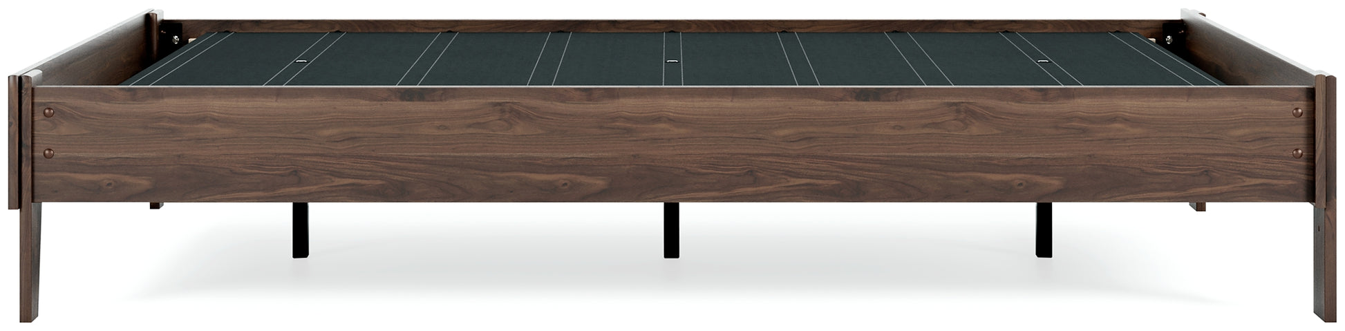 At the intersection of classic cool and chic sophistication you’ll find this queen platform bed. The rich brown finish over replicated walnut wood grain offers an authentic touch that plays well any way you style it. Minimal yet elegant in its design, this bed keeps your home decor grounded while elevating your modern style.