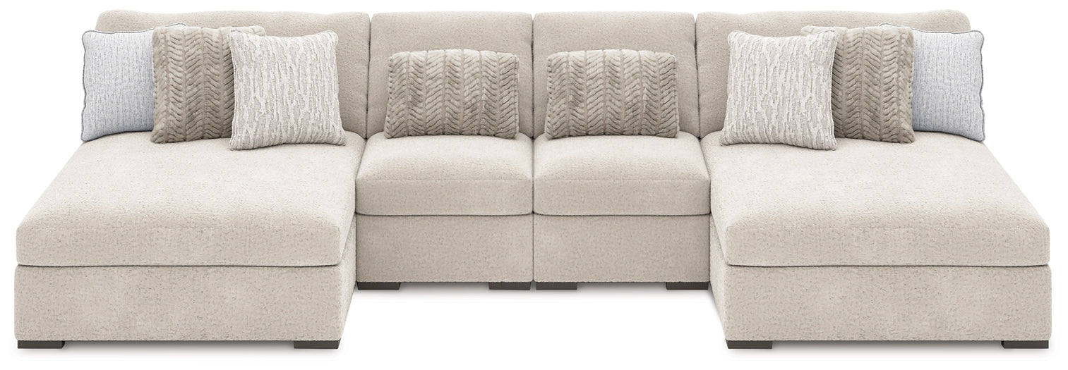 This plush double-chaise sectional is the ultimate spot to unwind after a long day. Its ultra soft upholstery feels luxurious against your skin, while the roomy seats and comfy pillows provide support in all the right places. With plenty of space to stretch out or snuggle up with loved ones, this modular sectional is perfect for movie nights, game days and everything in between.