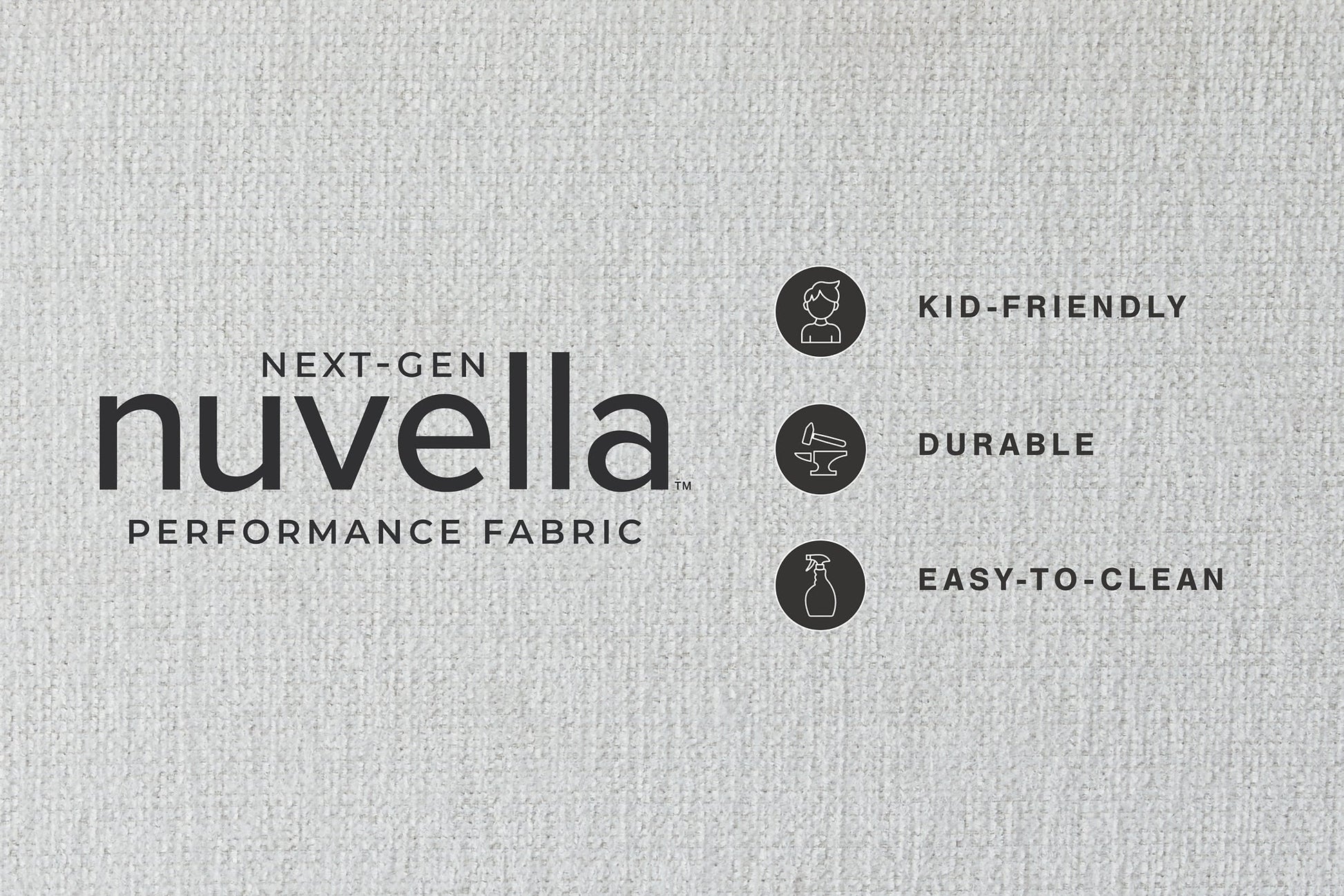 Includes upholstered headboard, footboard, bunkie board and rails , Foundation features nested bunkie boards with non-woven fabric for a snag-free mattress surface, Made with engineered wood frames, solid wood blocking, foam and fabric , Side rails feature laminated solid hardwood slat support rails (or LVL) with glued and screwed blocking for added strength, Polyester upholstery, Next-Gen Nuvella™ is a family-friendly fabric that is soft, easy to clean, stain-resistant and durable , Clean fabric with mild soap and water, let air dry; for stubborn stains, use a solution of 4 oz. bleach to 28 oz. water , Bed does not require a foundation/box spring; accommodates most zero clearance adjustable bases, Mattress available, sold separately, Assembly required